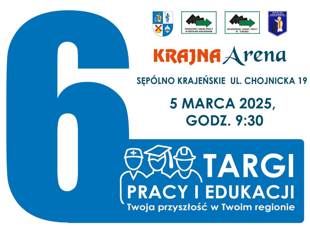 Starosta Sępoleński, Burmistrz Sępólna Krajeńskiego oraz Dyrektor Powiatowego Urzędu Pracy w Sępólnie Krajeńskim zapraszają na VI edycję Targów Pracy i Edukacji „Twoja przyszłość w Twoim regionie", które odbędą się dnia 5 marca 2025 r. w godzinach od 9:30 do 14:00 w hali sportowej Krajna Arena mieszczącej się przy ul. Chojnickiej 19 w Sępólnie Krajeńskim.