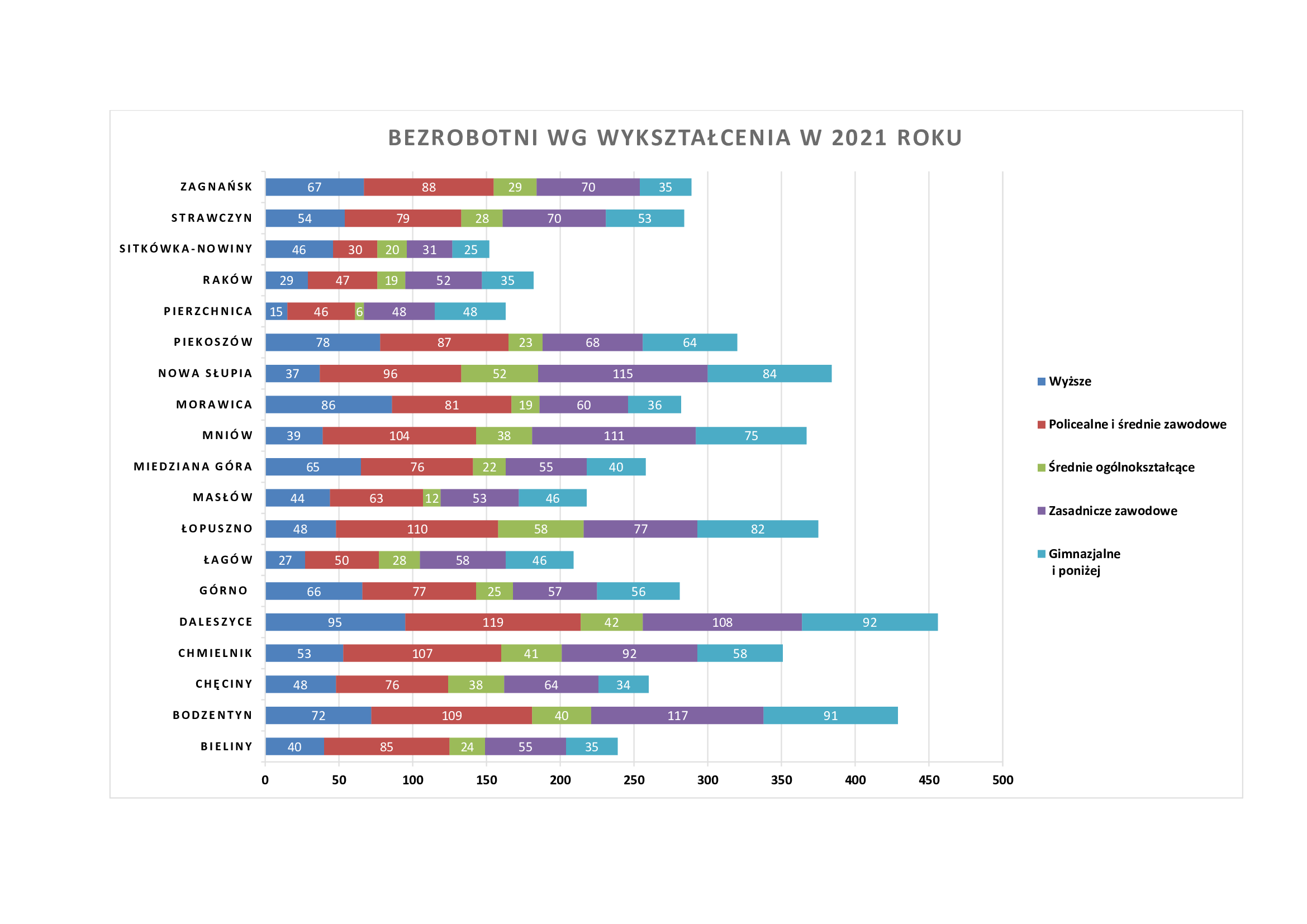 Statystyki - Stan bezrobocia w gminach 2021 - Powiatowy Urząd Pracy w Kielcach