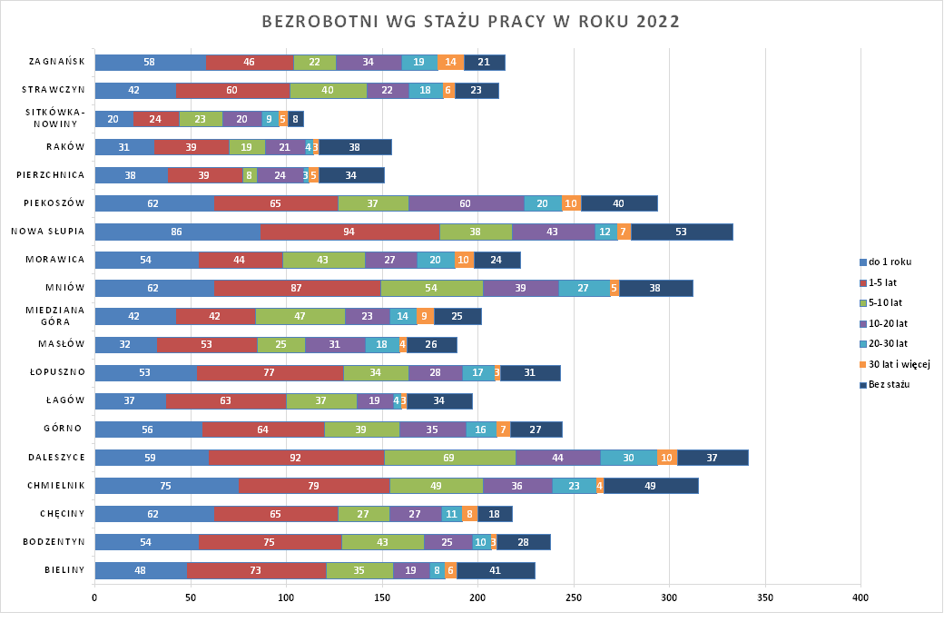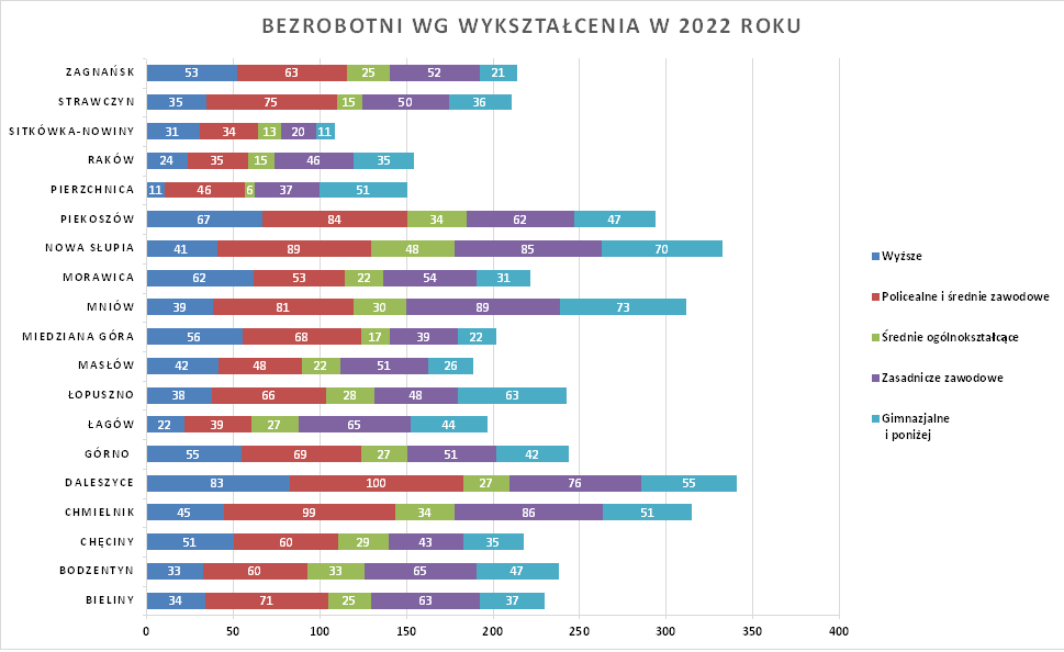 Statystyki - stan bezrobocia w gminach 2022 - Powiatowy Urząd Pracy w Kielcach